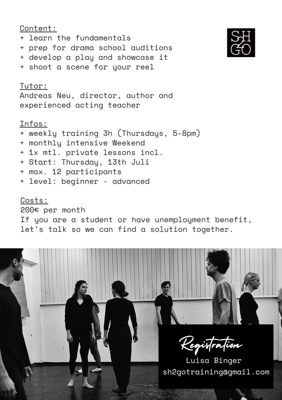 Shakespeare2go bietet einen Schauspielkurs ab dem 13. Juli an. Der Schauspiel-Grundlagenkurs richtet sich an professionelle Schauspieler*innen und an die, die es werden wollen. Er ist für alle diejenigen, die dafür brennen, ihr” Instrument” zu stimmen.